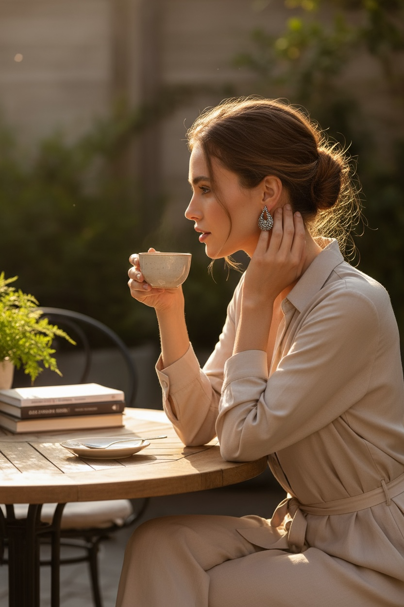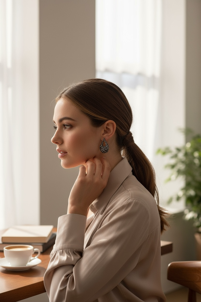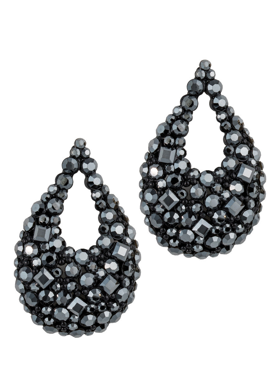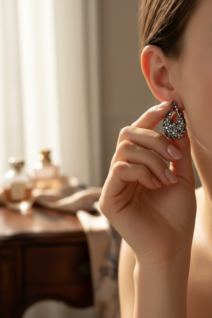 Together or separate bullet stud accented drop earrings with Swarovski crystals, CZ and tassel, Antique Gold finish, Pink Gold