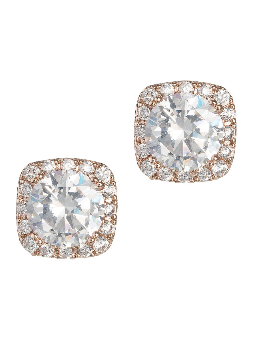 Features: High quality CZ Rose Gold finish over Brass Pierced post 3/8" diameter